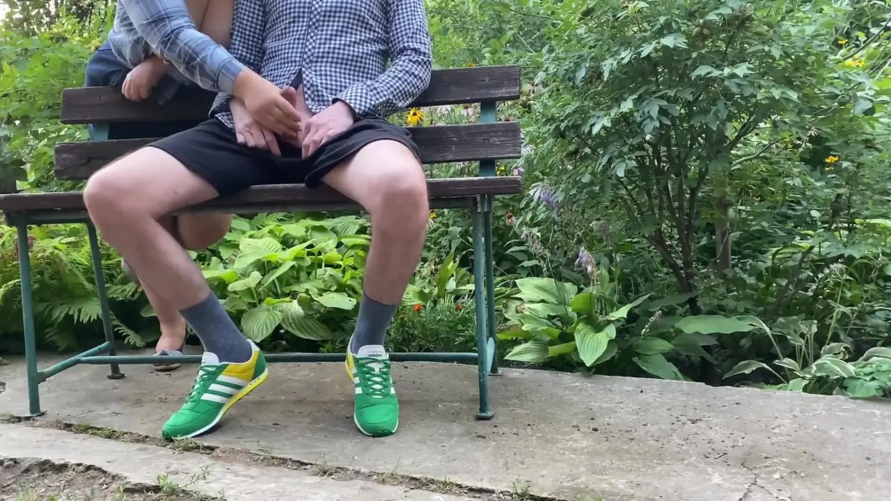 A loving mature mom with big natural tits and a big ass flashes her assets while giving her son-in-law a handjob in public. She jerks his hairy dick with care and passion, making him cum all over her chubby hand.
