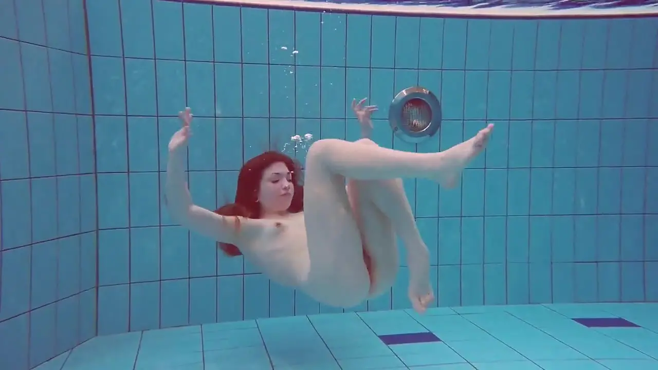 A stunning nymph in a one-piece swimsuit dives into the public swimming pool for some aquatic fun. She showcases her talent by performing various sexy moves in the water, teasing with her nude body. The lucky guy joins her and they share an intimate moment, resulting in an underwater cum shot.