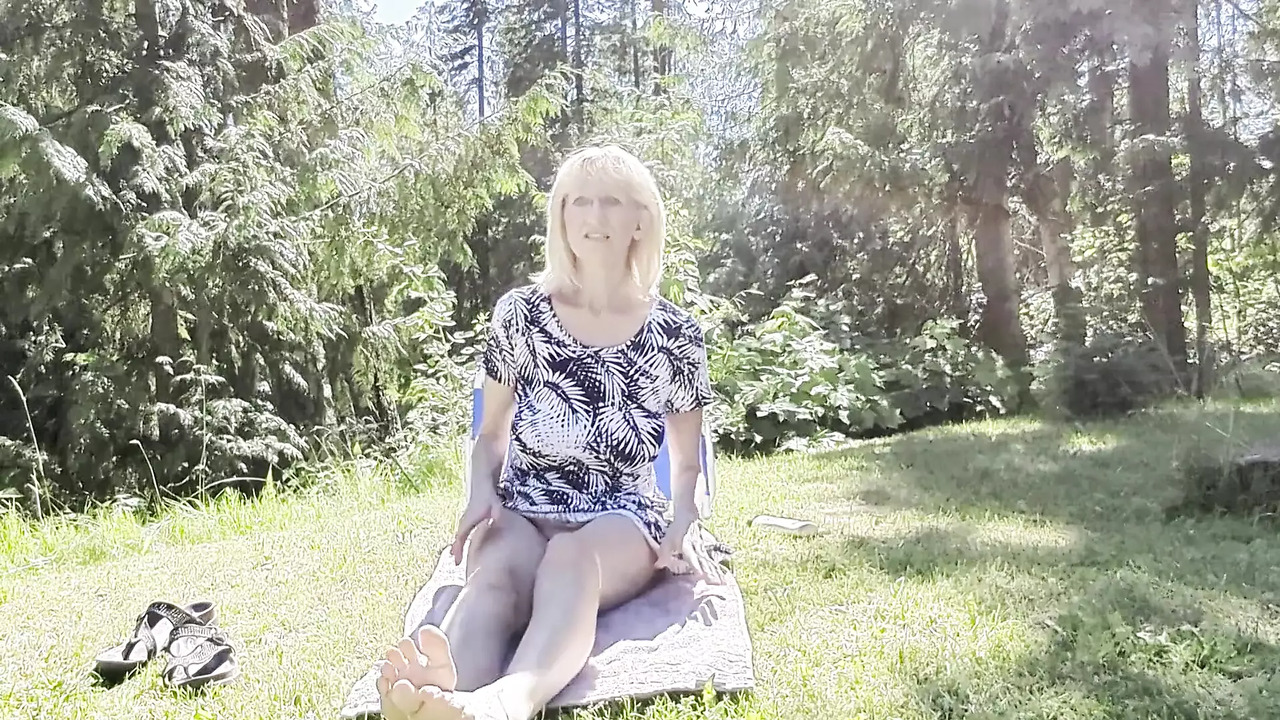 Natural beauty squirts while sunbathing in her yard