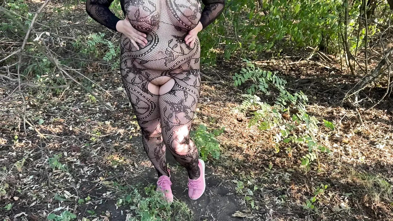 MILF wife in fishnet bodystocking takes fast bareback creampie