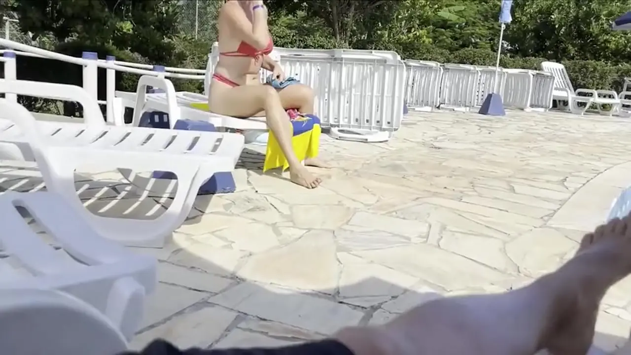 Amateur GF helps jerk off in public pool POV