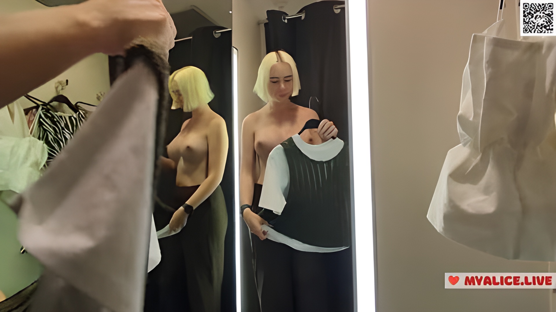 - Sensual Try-On Session at Mall — Transparent Clothes on Display
