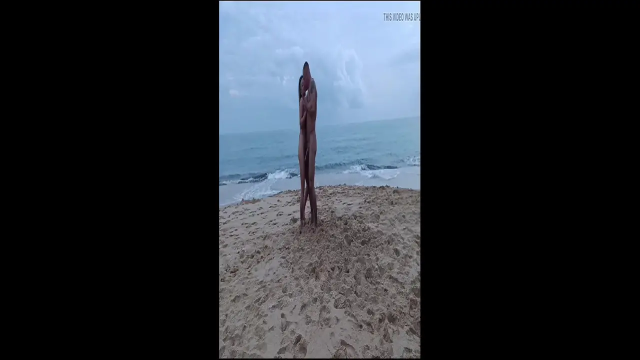A stunningly beautiful woman with small tits and a big naughty cock-loving guy dance and kiss passionately in the sand. They grind and fuck each other while waves crash around them. The sun sets in the background, making the whole scene even hotter.