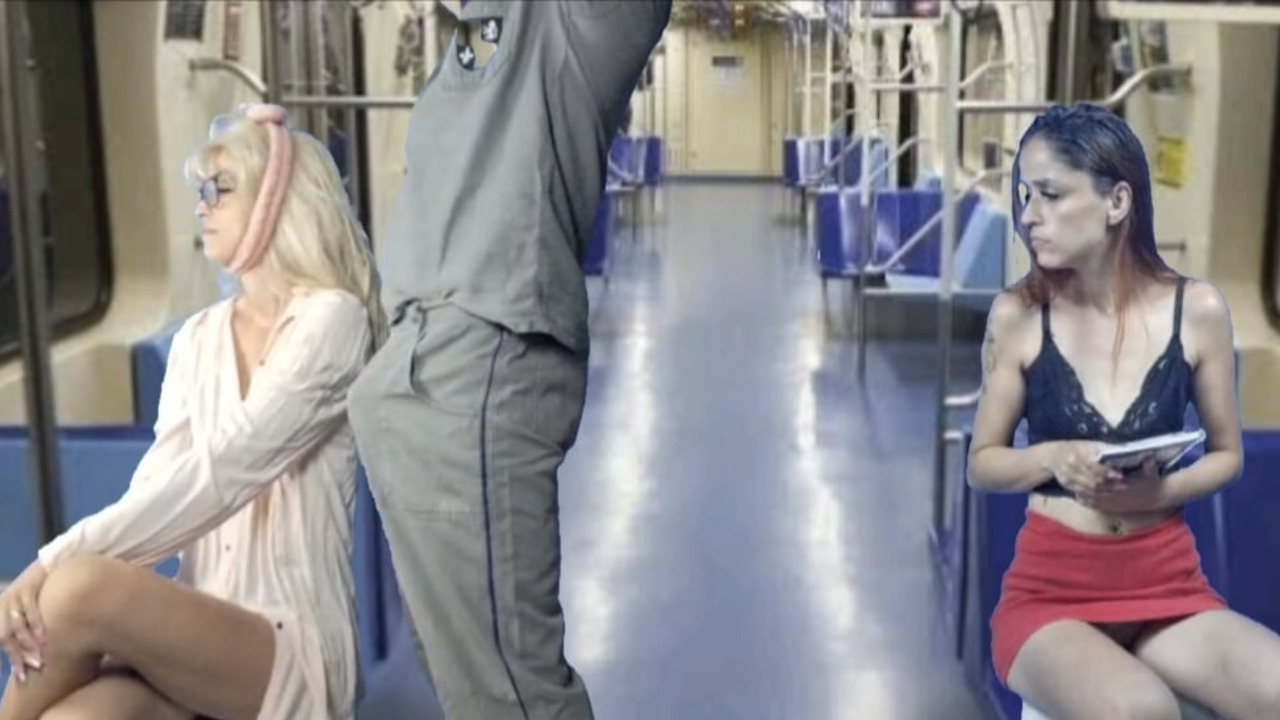 Pervert of the train gets on public transport and already gets into an erection and keeps rubbing on the shoulders of the women, until one of them didn't like it but another liked it and let him cum on her.and she came out all creamy after jets of cumshots on her breasts