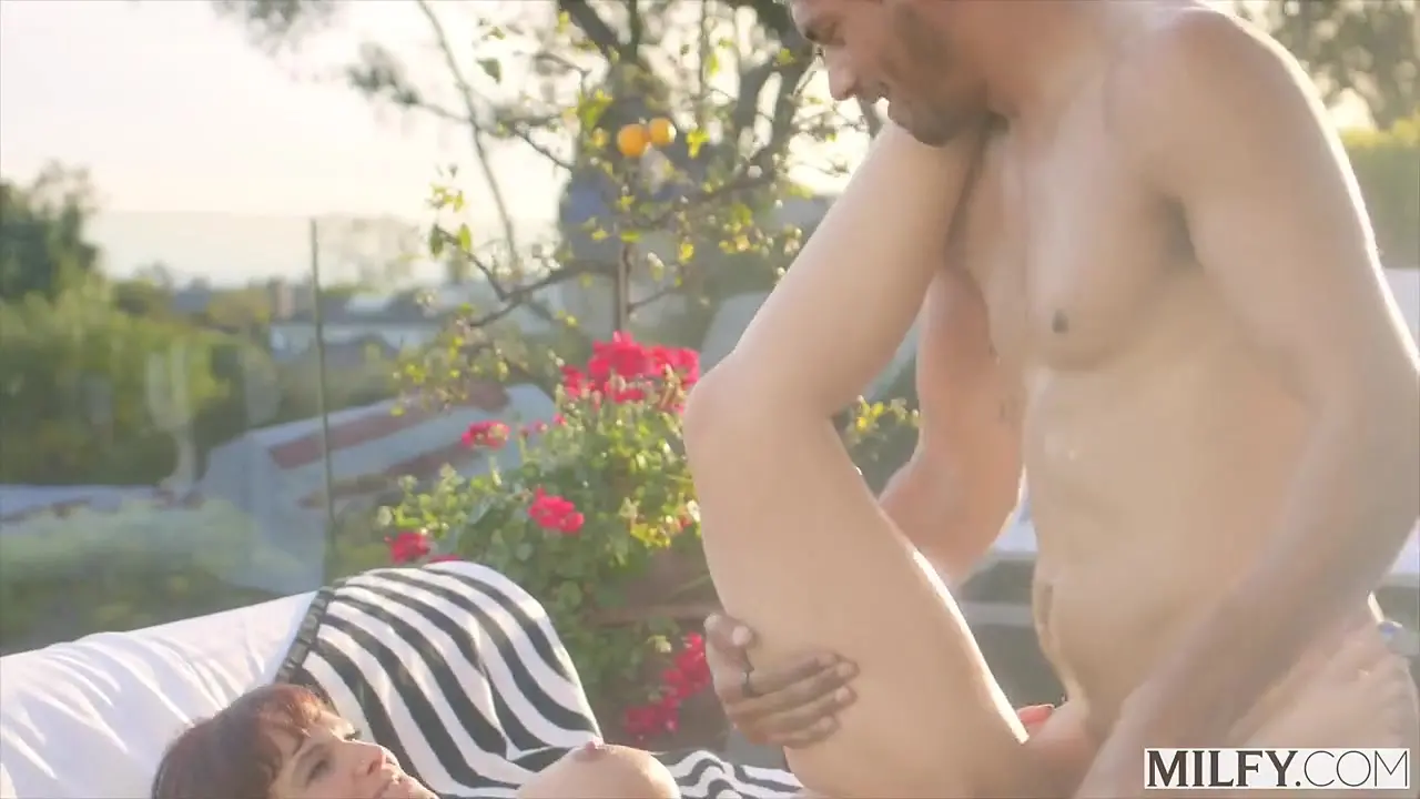 A lovely curvy mature woman with a sweet youthful face humps his young cock poolside. She takes her time with his manhood, riding it hard and enjoying every moment. They both moan as he fills her up with his hot load.