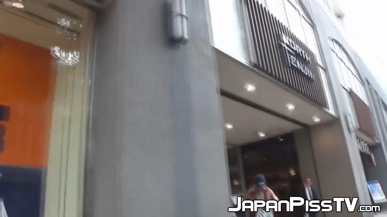 Teasing a pretty Japanese babe to pee in her knickers