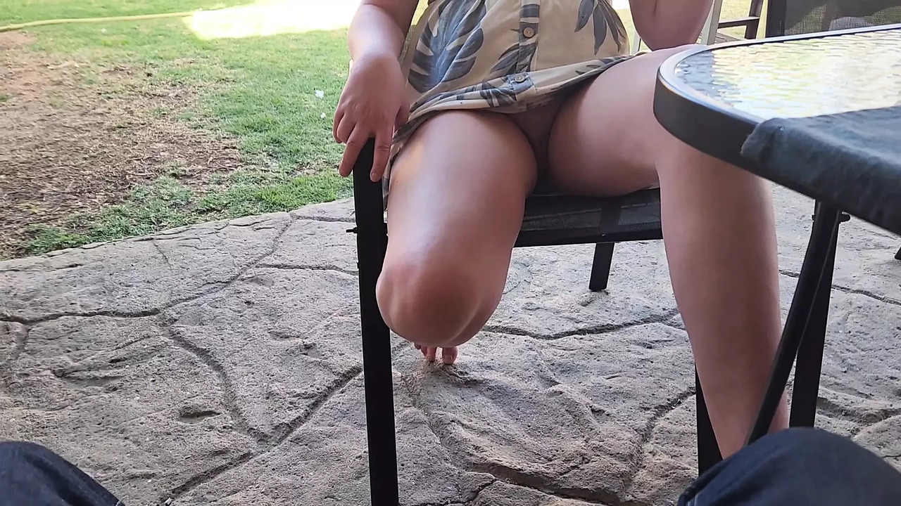 Hot blonde flashes her juicy pussy while I jerk off