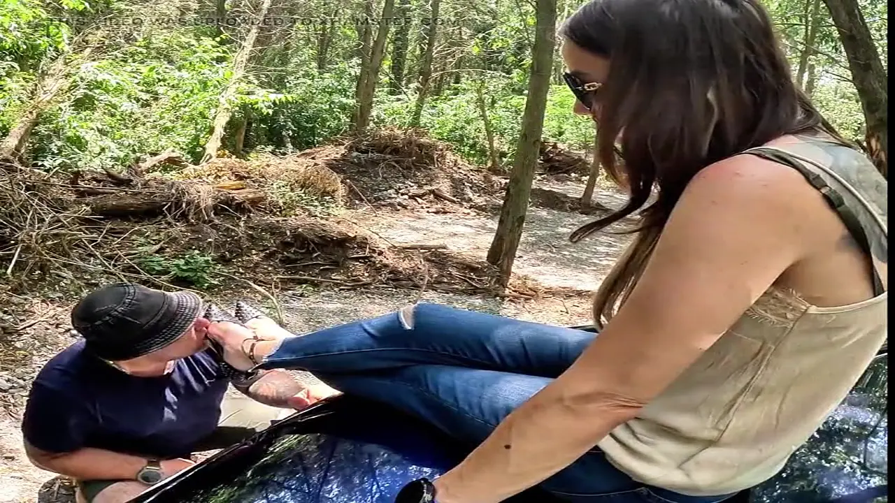 A young girl with a foot fetish eagerly licks the pointed toe of her dominant mistress's high heels. The foot mistress teases her slave, making him feel humiliated as he worships her feet. He's clearly aroused by the sensation of her sole and the act of licking her shoe.