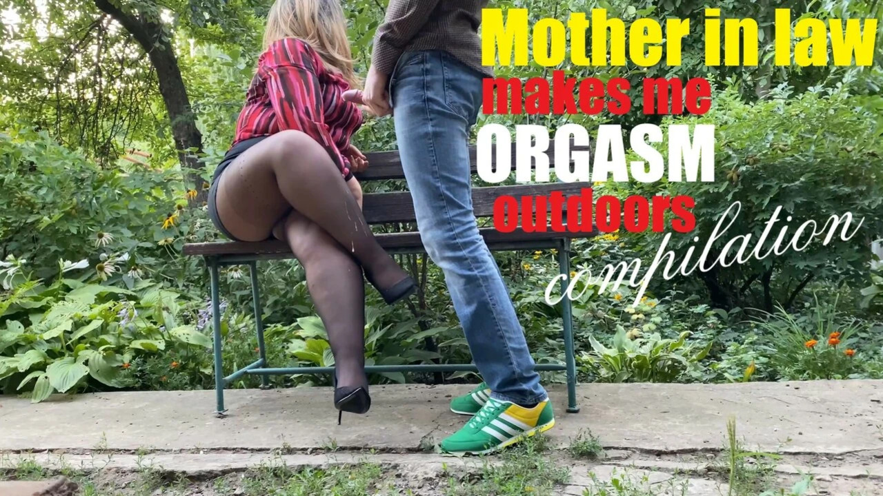 Hot MILF mom gives handjob and cums in public park