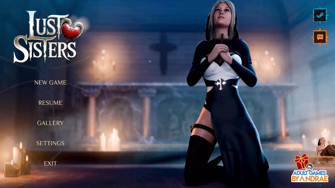 Marianne's lustful stepsister takes charge in this 3D animated hentai game. She dominates Marianne with love and control, their passion growing closer with every moment. As they spill their desires together outside the warm church, they can't help but engage in a naughty nun fuck, with the horny nuns saying no to their temptations.