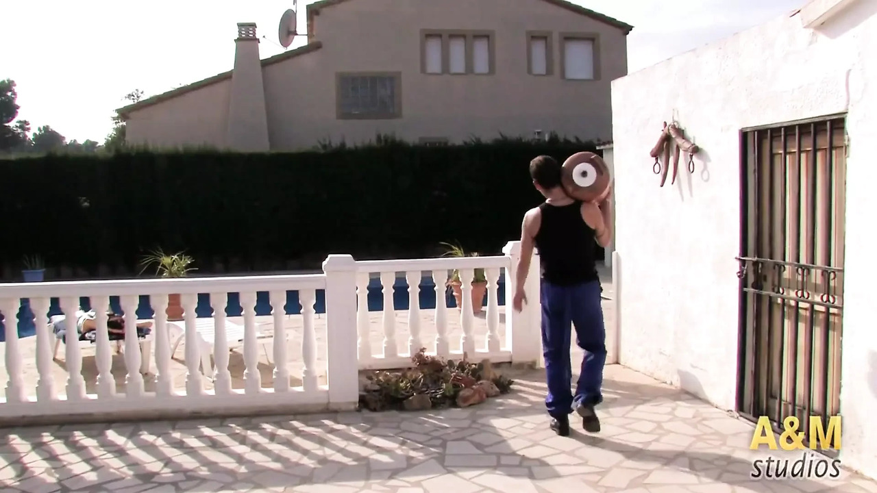 Sexy housewife with a body to die for takes on this lucky guy in a multi-service session. She first teases him with her hot feet and toes before swallowing his rod whole and giving him a throat job. They finish off by cumming in the pool.