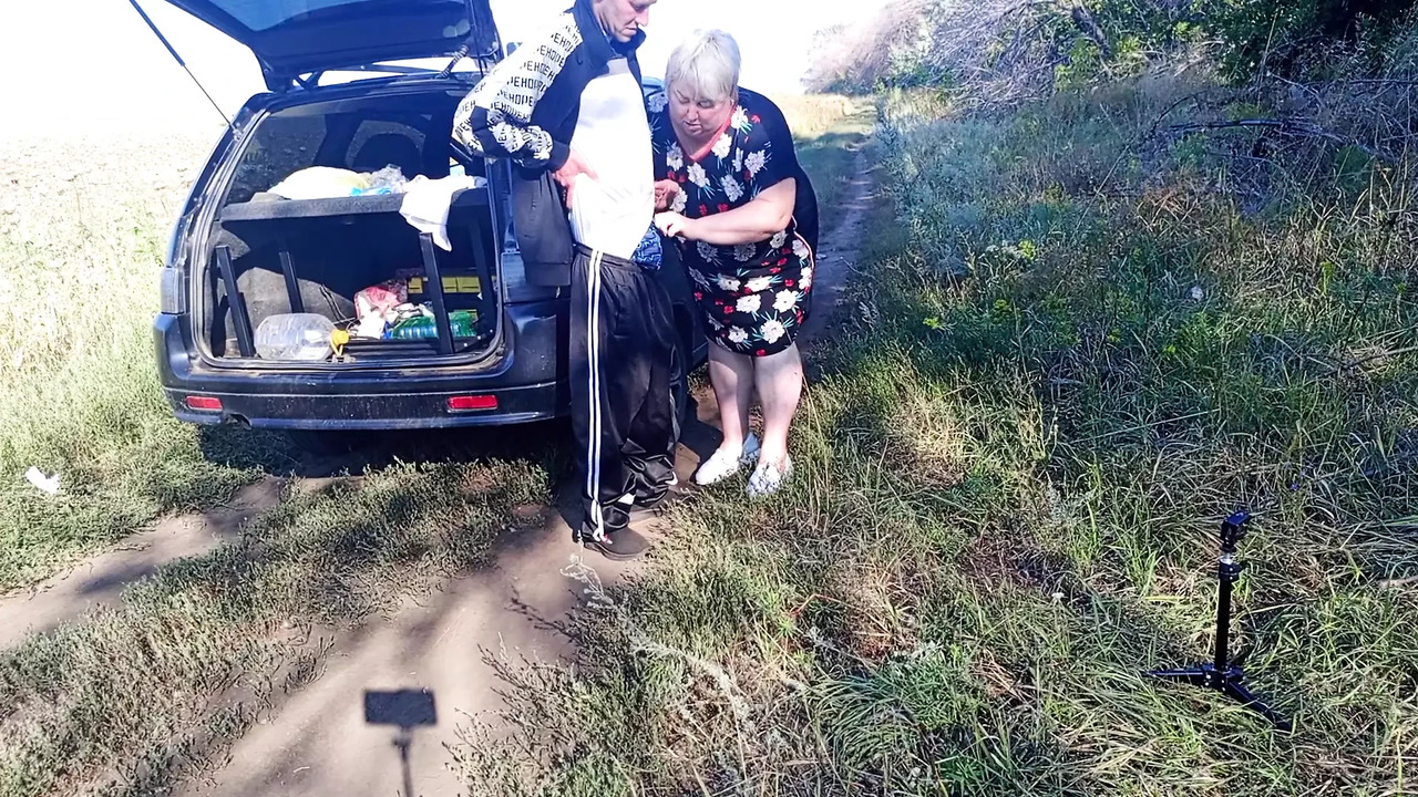 A mature mom holds his erect dick while he pees, then gives him a public blowjob. She jerks him off and swallows his cum, showing off her skills.