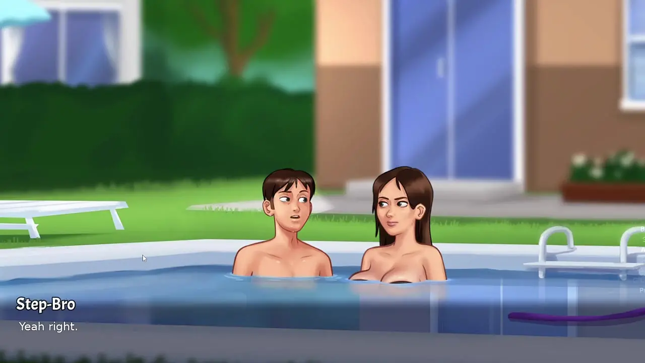 In this hardcore adult game, a pool boy gets lucky with a shaved pussy. He grabs and bounces on it as fast as he can, making the girl moan with pleasure. In the end, he finishes with a powerful cum shot.