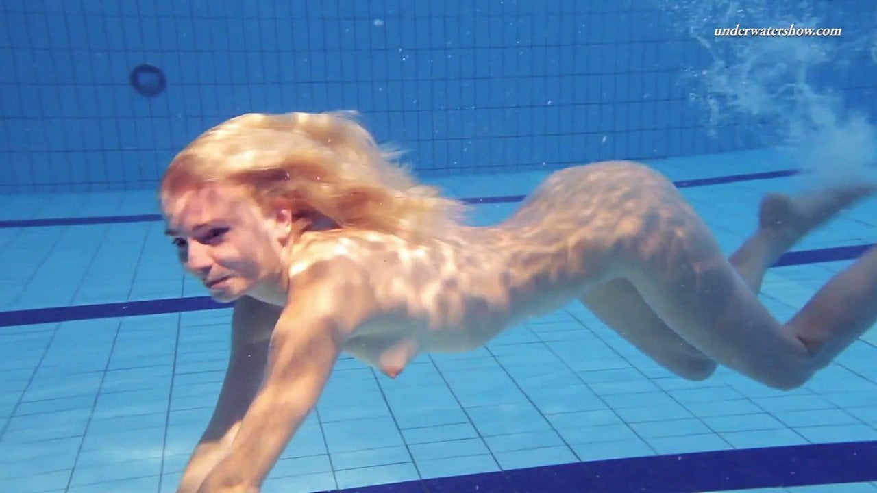 Stunning blonde Elena Proklova showcases her gorgeous body in a swimsuit as she dives underwater. She playfully shows off her tight 18-year-old pussy while swimming in the outdoor pool. Her wet bikini hugs her curves, teasing viewers with a glimpse of her nude body.