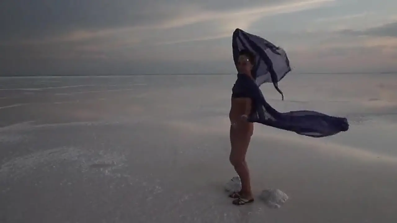 Sexy mature mom performs a sensual belly dance on the salt crust of Salt Lake Elton. She moves her body gracefully to the rhythm, her naked form silhouetted against the beautiful sunset. As she dances, she becomes more and more turned on, and the erotic atmosphere leads to her getting fucked in her tight cunt.